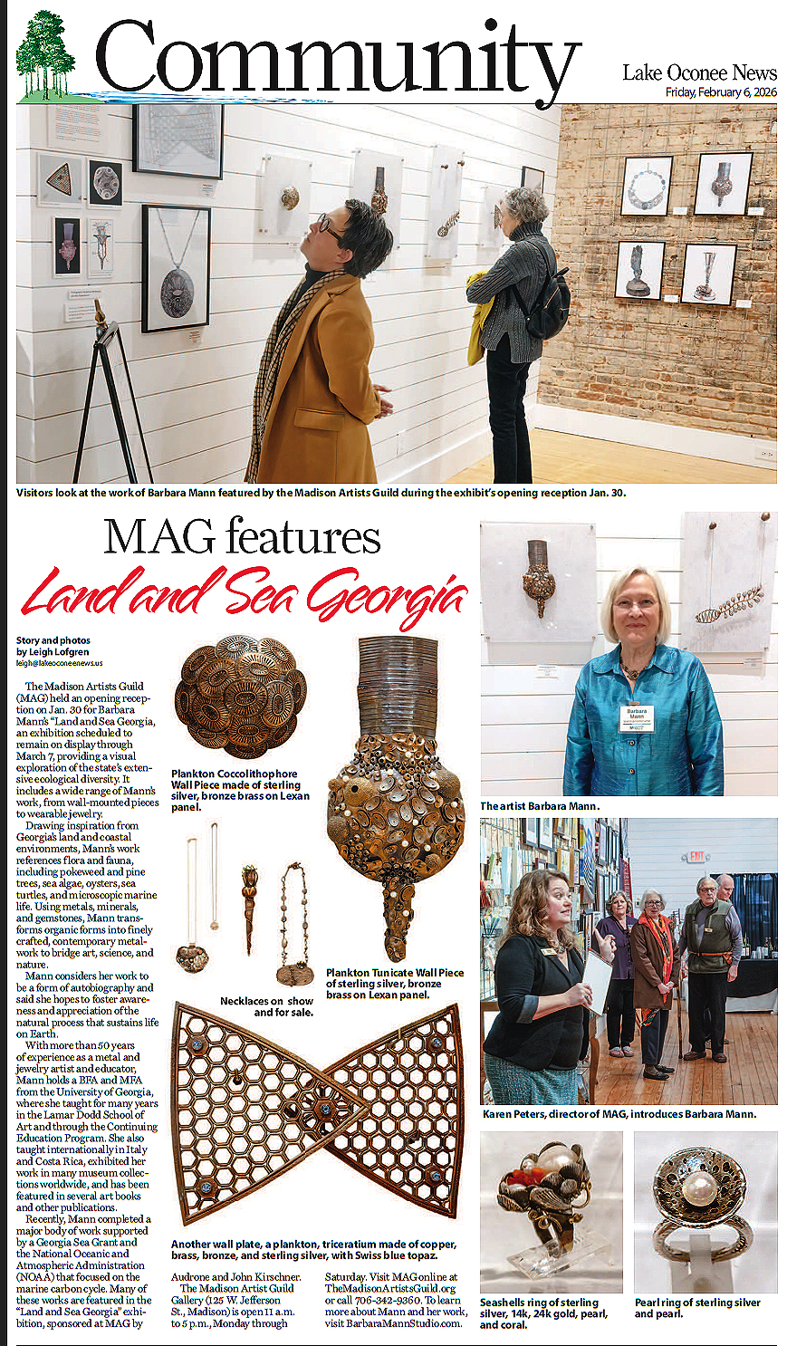“Jewelry and Metal Work by Barbara Mann,” presentation to Athens Metal Arts Guild, Lyndon House Arts Center, Athens, GA, March 16, 2025.